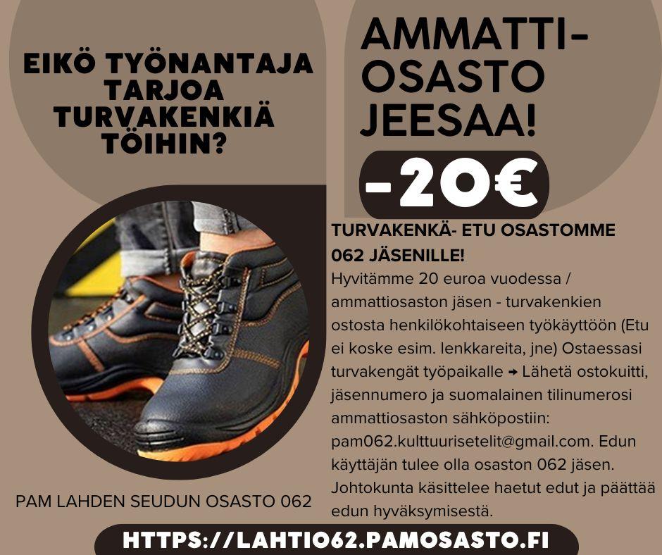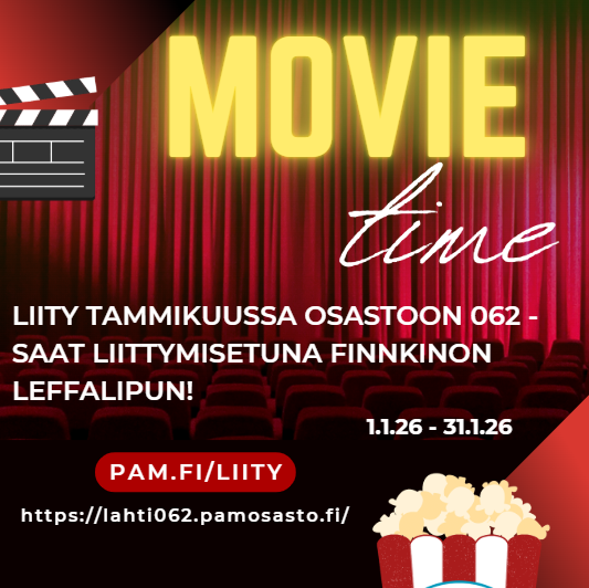 Paljon tykätty ja käytetty kulttuuri- ja hyvinvointietu voimassa myös vuonna 2026. Se on tarkoitettu osastomme PAM 062 jäsenmaksua maksaville jäsenille. Etua voi hakea kertaluonteisesti,…